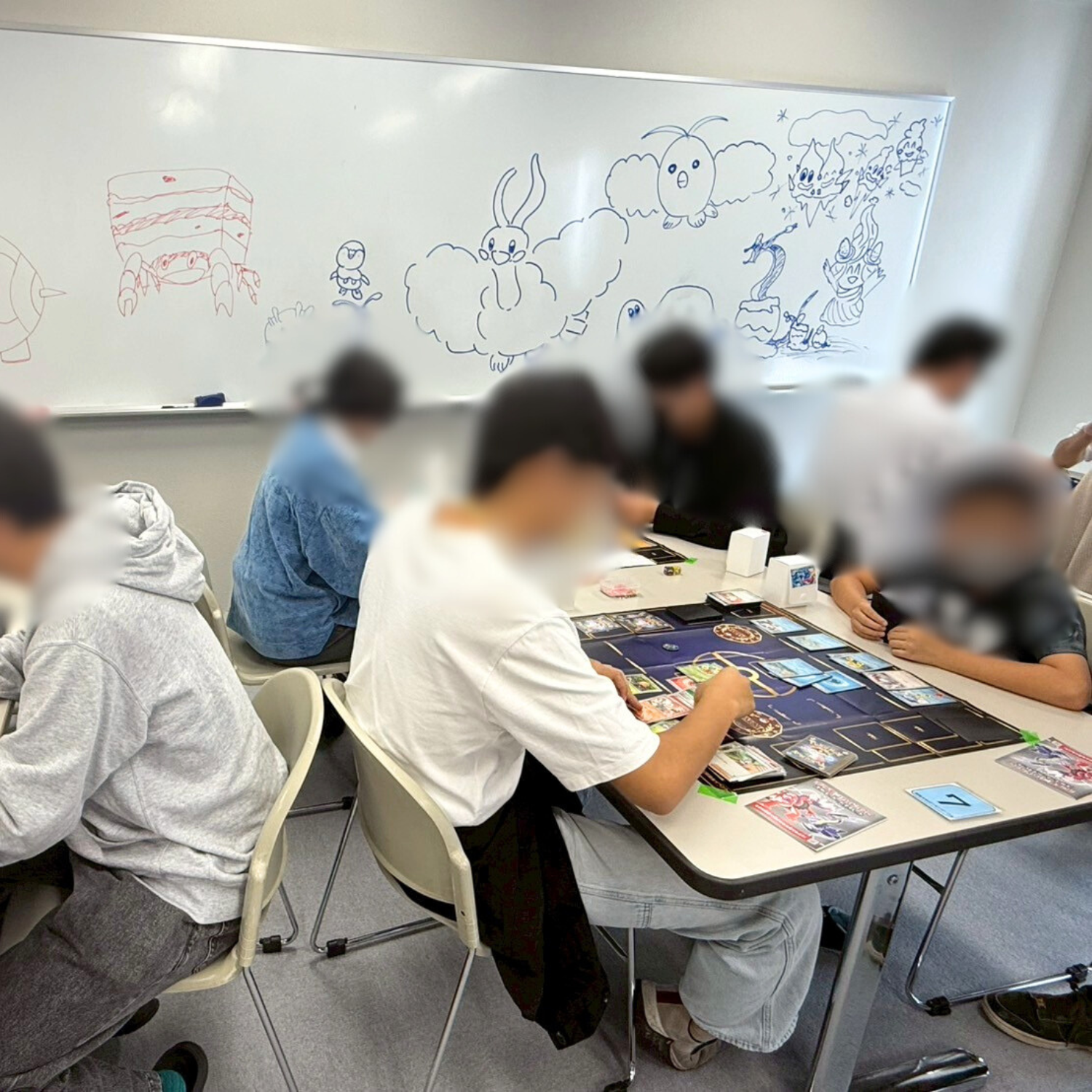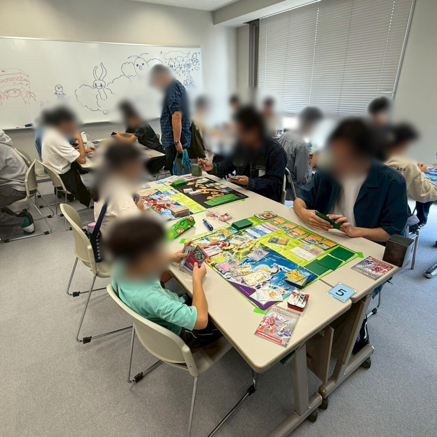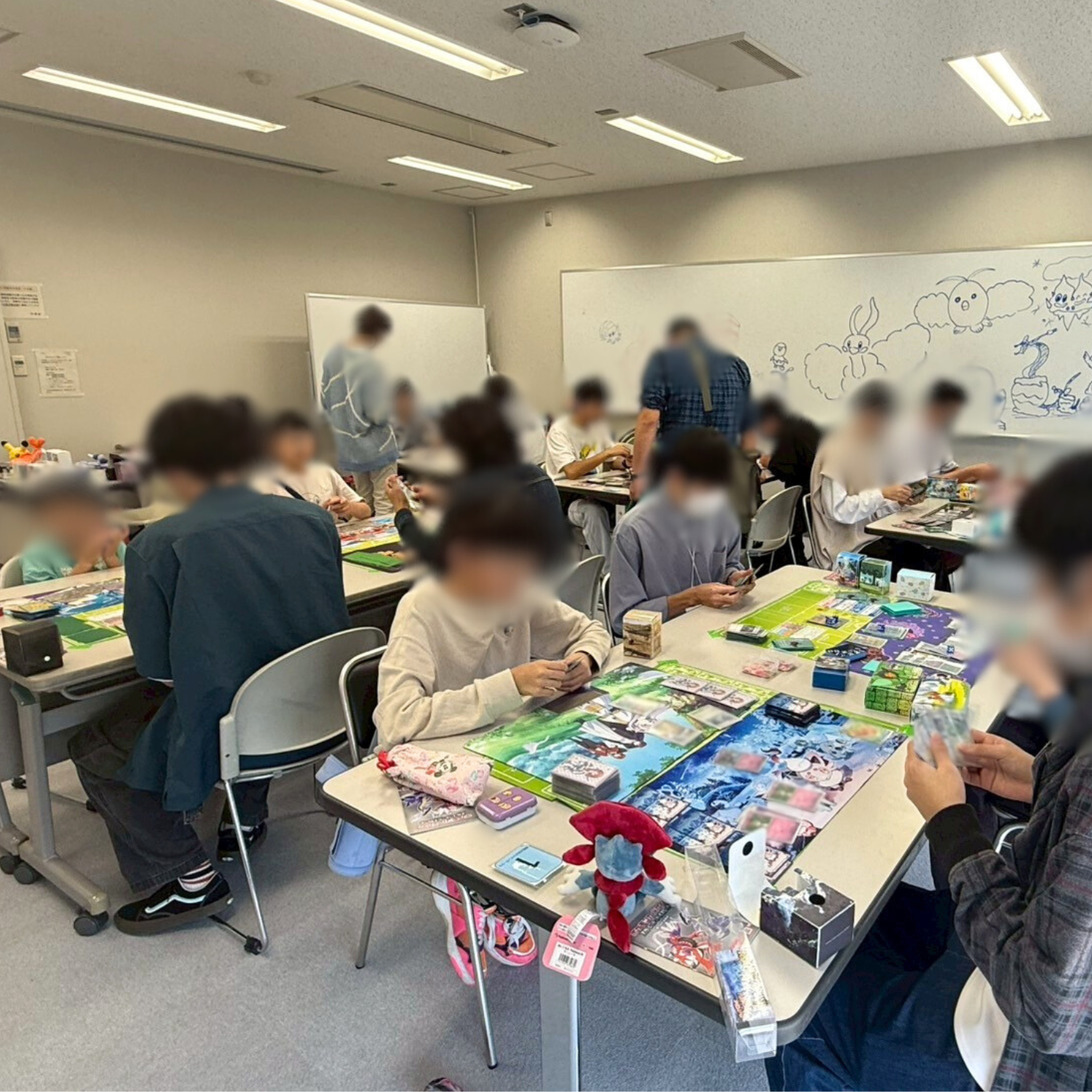 みなさんお気に入りのデッキシールドやプレイマットを使って楽しそうにポケモンカードをしていました。