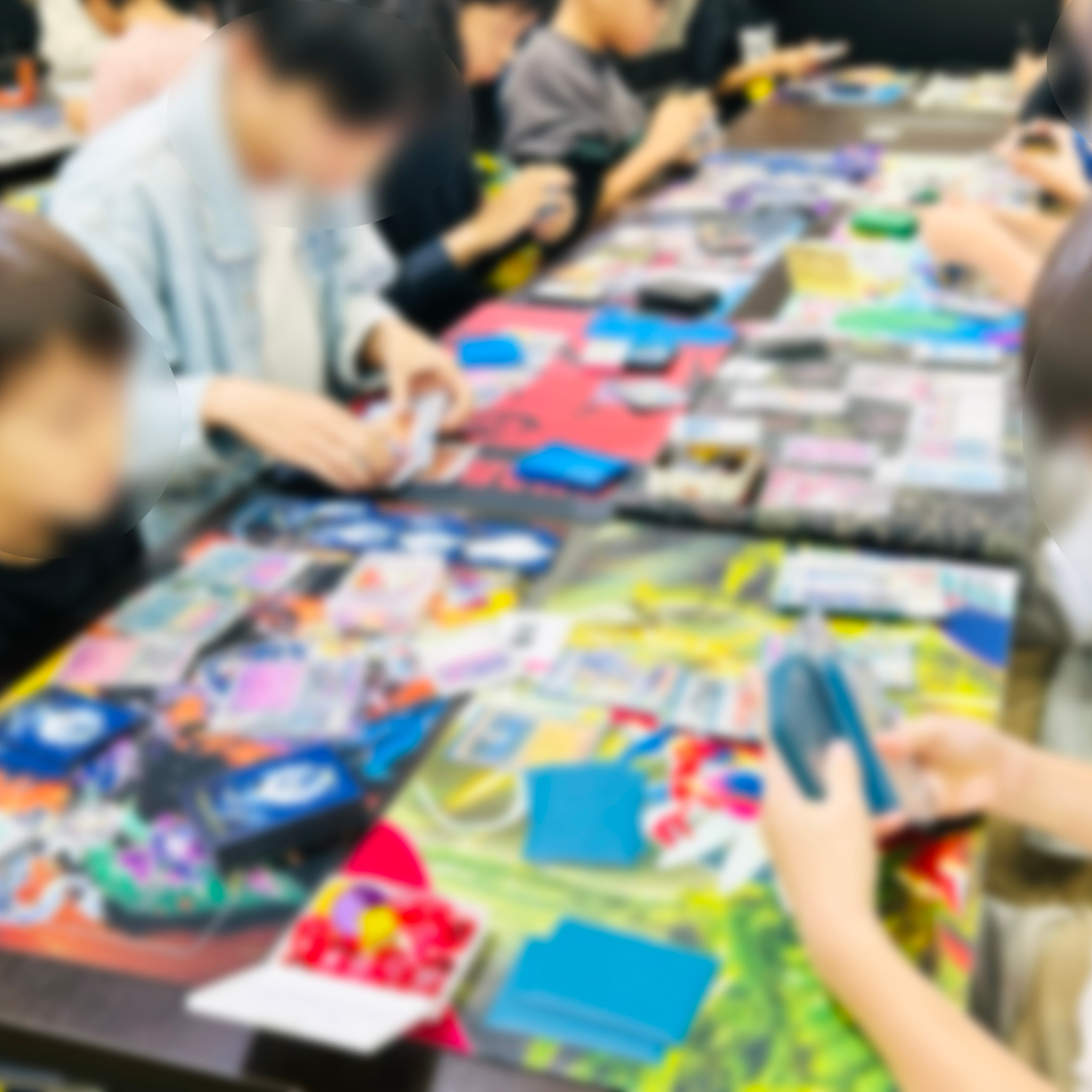 いろいろなプレイマットやスリーブを皆さん使っているのでとてもカラフルですね👀